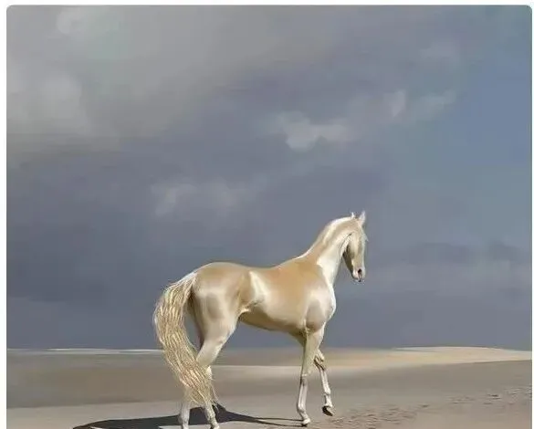 这匹通体金光的马,毛顺得像抹了油,背线干净,腿骨修长,转身的时候尾巴刷地一下,沙地上划出一个弧,外公说过去得跑上几百里才遇见一匹好马,现在我们在屏幕上伸指一划,就能盯着它打量半天。