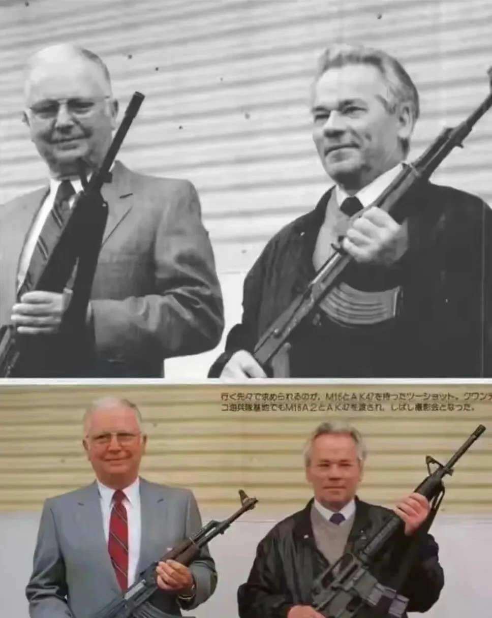 这张双人照里,两个老先生各自拿着对方的家伙,黑白与彩色对在一起,时间像被按了暂停键,年轻时候他们隔着海彼此角力,如今肩并肩对镜头笑,时代走过一圈,很多锋芒也就收了。