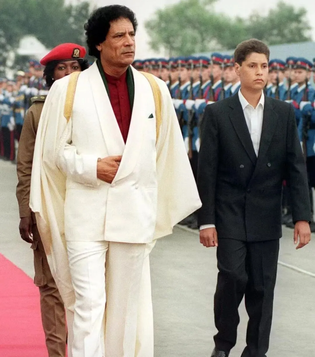 图中这身白得耀眼的叫礼服披风,走在红毯上,袖摆像一道浪,少年紧挨着跟着,脸线条还稚,队列在远处站得笔直,鼓点像从胸腔里敲出来,稳稳的。