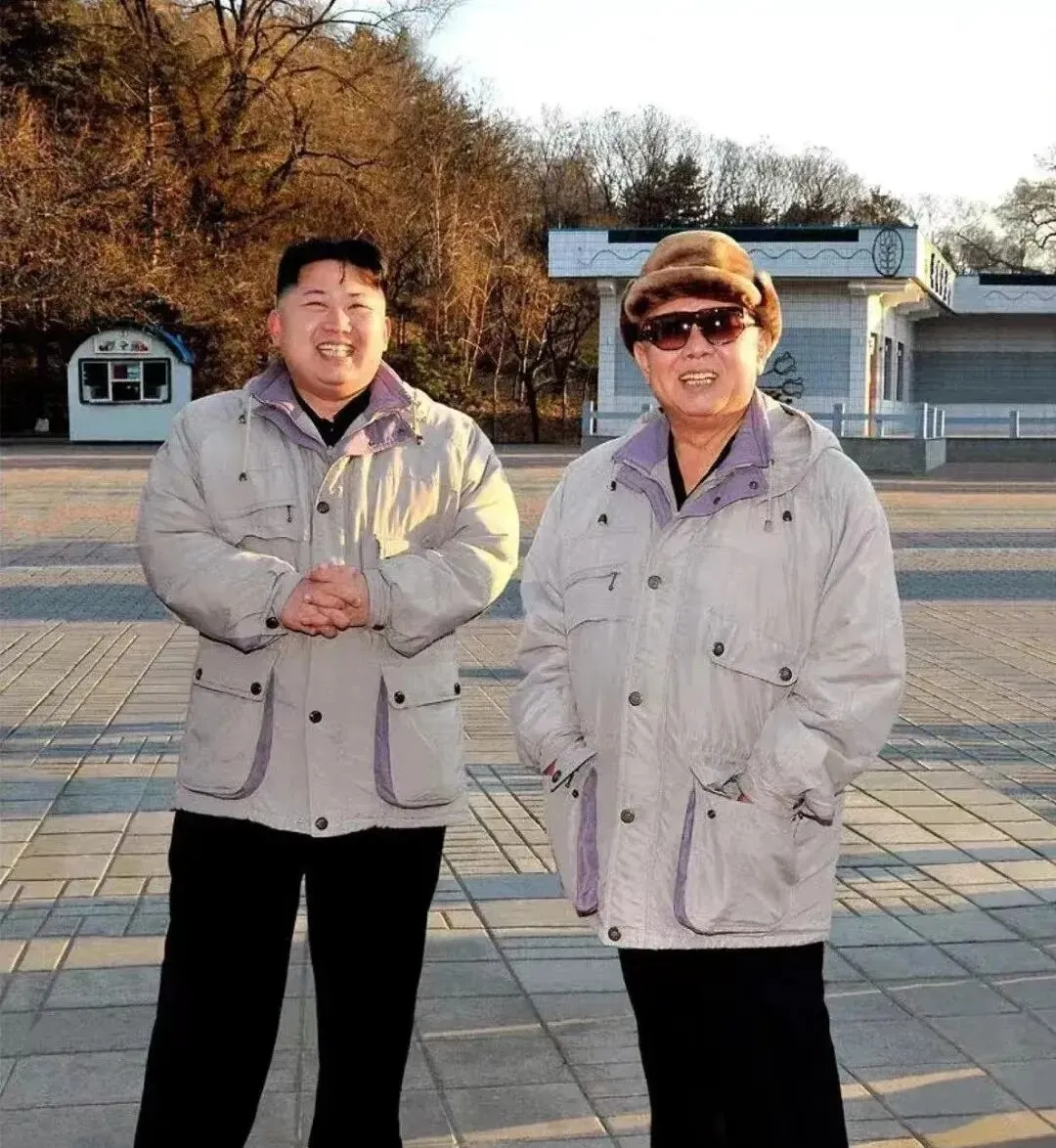 这个笑容很实在,浅色防寒服一件两件,口袋鼓鼓的,太阳斜着照过来,影子拉长在地砖上,父子并肩站着,像刚从游乐园出来,手心还带着一点孩子气的兴奋。