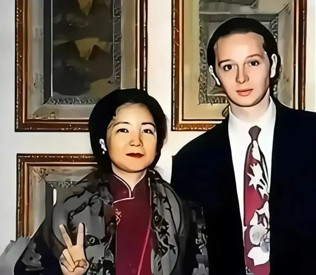 图里这位小姐姐比个剪刀手,绸面外套花纹细密,旁边的青年系着大胆的花领带,脸上还带点青涩,背景是金边画框,灯光一照,整张照片像糖纸一样亮,年轻就是这么冒泡。
