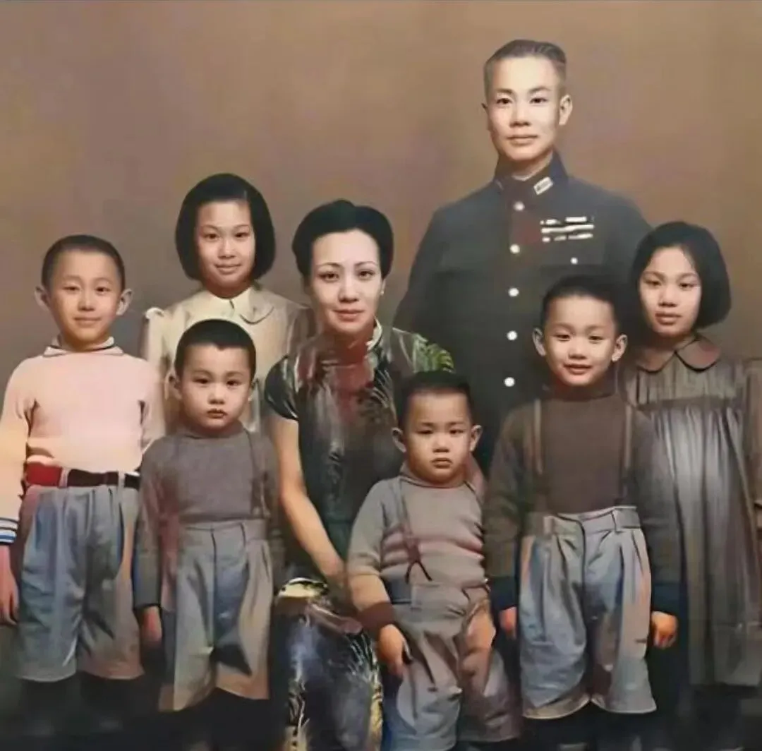这个大家庭合影很暖,爸爸军装笔挺,胸章规矩地排成几行,妈妈穿旗袍坐在中间,孩子们围着一圈,裤线拉得高高的,拍照那天估计刚梳过头发,亮晶晶的,笑也羞也都在眼睛里。