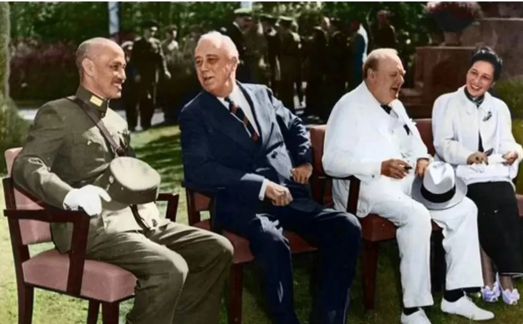 这张合影叫草坪会谈,四把椅子一字排开,白西装在阳光下晃眼,黑帽子搭在手上,几个人低头说笑,像刚把一盘难局推演了一遍,气氛一下子松了。