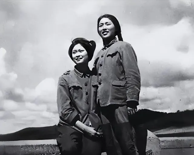 这个照片里的俩姑娘,穿着对襟工装,一人站着一人坐着,头发梳得整齐,背景一片开阔云团,站在田边没一点扭捏样,大方,衣服皱着不见油光,全靠水和肥皂搓,左侧那位手背搭在同伴胳膊上,风向顺着衣襟转,小时候奶奶念经说,那个时候走十里地谈一次心事,什么苦都能一笑带过,只要人没疏远,路有多远都不怕。