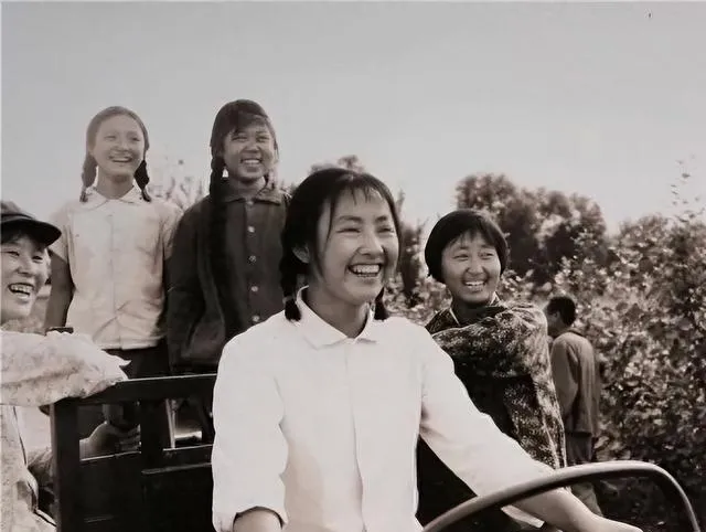 图里戴灰色外套的姑娘和头顶那头黄牛,这组合在村里不算稀奇,那时候下乡的女知青,卷起袖子干农活一点不含糊,牛角旁边的绳子攥在她手里,笑容像是风里带来的,不用特意去摆,一个早晨赶牛下地耙田,手上沾了泥,裤子上的白点也舍不得擦,有时候累得直不起来腰,回头还冲身后的同伴乐一乐,村里老人常说:下地的姑娘长得壮,心也宽,这一点照片里看的真切。