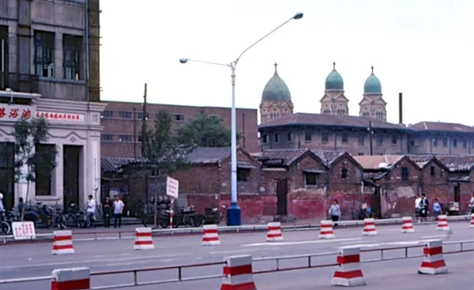 图里这栋转角的楼写着浴池,白立柱加老灰砖,旁边一排红墁子的低矮平房,墙面斑驳,顶上露出三座绿穹顶教堂,层层叠着,好像城里不同时代的影子被放进一张底片里。以前洗澡得掂着搪瓷盆去公浴,门口停着半排二八大杠,换票开小号柜,木头板子一压咔哒响,澡堂里蒸汽呛人,搓澡师傅吆喝着翻身,啪一声水花溅起来,现在谁还这么搓呀,家里都有淋浴花洒了。