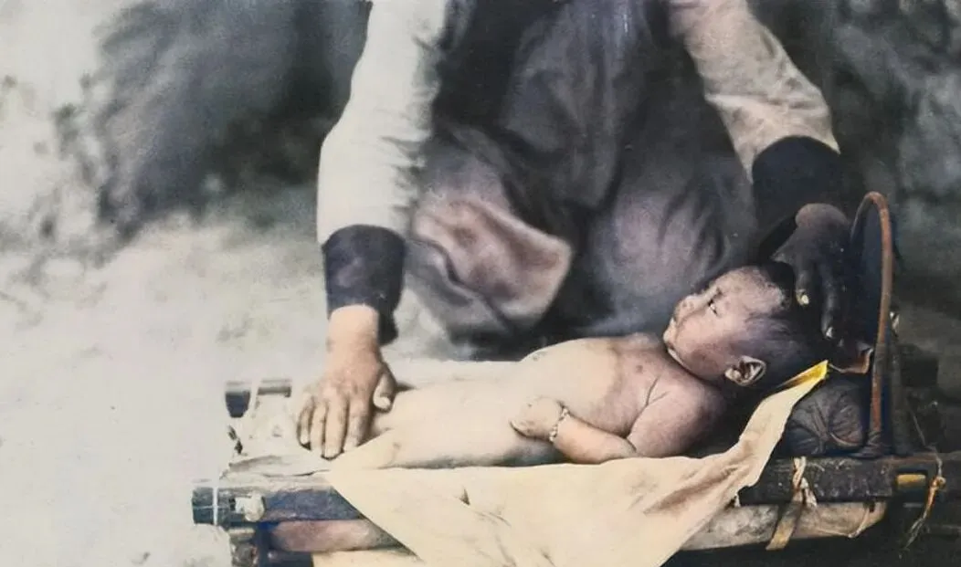 时光倒流:上色老照片看看当时的婴儿车、日军占领下的儿童、大内高手、防饥民偷盗装置。