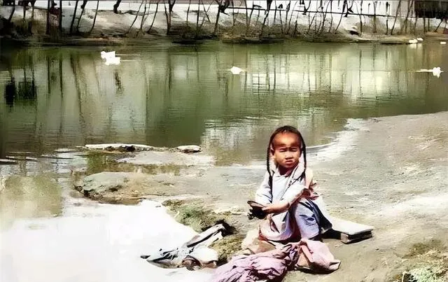 图中小姑娘叫童养媳,河湾边一身薄衣裳,膝下垫块石头,手里攥着搓衣石,湿漉漉的袖口贴在胳膊上,面前一堆衣裳像小山,水里游着几只鸭,叫声一点都不帮忙,姥姥提起这茬只说一句,小小年纪也得当家过日子,现在孩子放学回家先找零食,以前这岁数知道冷水多呛人。