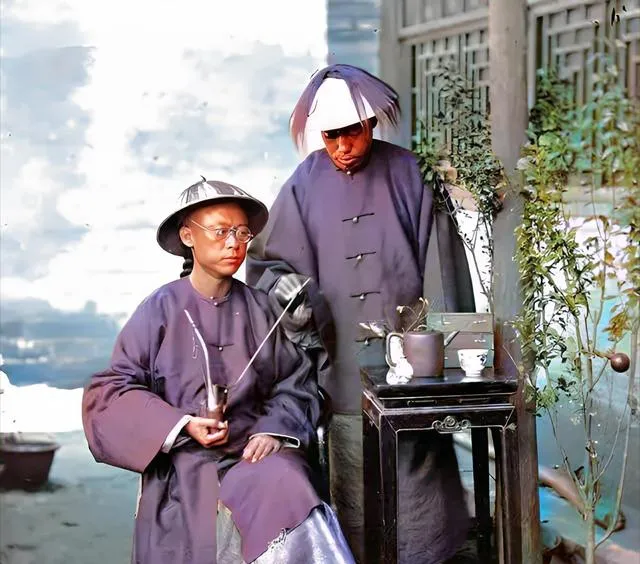 桌上搁壶茶,手里捏的细管叫水烟袋,细长的杆子亮闪闪,帽檐压得低,旁边小厮捧着火镰,一口吸完再抿茶解辣劲,动作不慌不忙,像戏里一样顺,外甥说这玩意儿有啥好抽呀,我说那会儿就这口,凑个劲才算坐下。