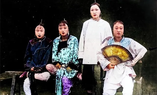 19张清末上色老照片:男武官提刀上马,女艺人才貌双全。