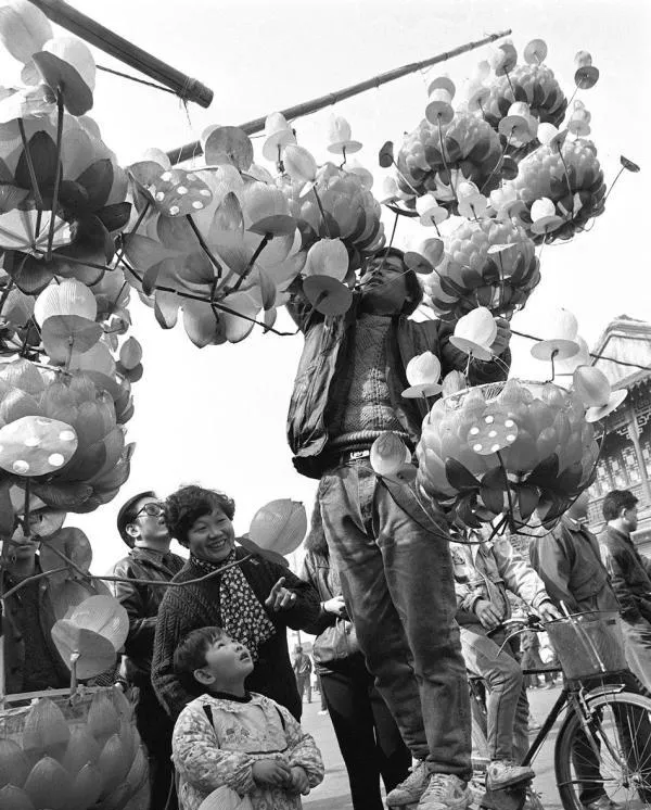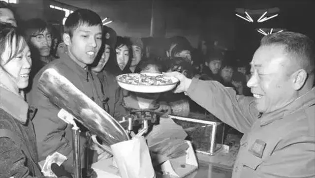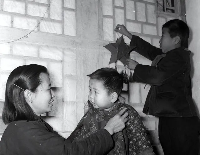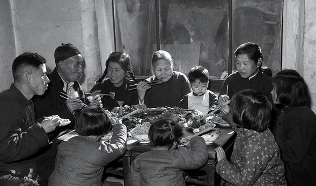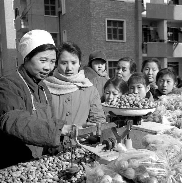 图中这些叫团聚和置办,一桌子菜顶着热气,院口有人给娃穿棉鞋,手指头冻得红,另一头车间里一排排二八大杠正闪,赶集买年货的人把手臂伸得老长,谁抢上谁乐,妈笑我个子矮站凳子也够不着,结果回家我把花生拽进怀,一个都不撒。