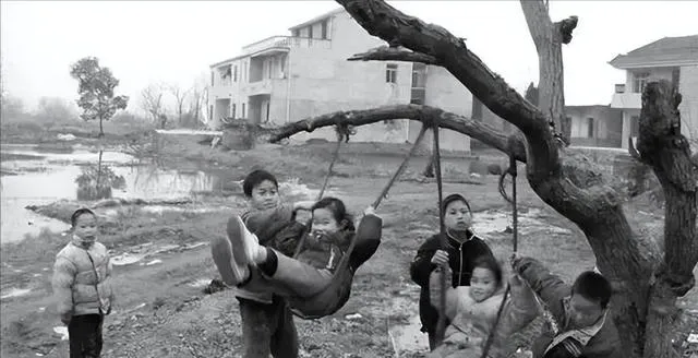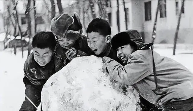 这几张是乡下娃的课间,小人书摊开一地封面磨得发亮,单杠上一脚勾住就能倒挂着笑,教室里火炉子冒烟把黑板熏得黑上更黑,雪天大家合力滚个大肚子的雪人,草垛边掏个窝钻进去打盹,地上挖个灶口烤土豆,撕开皮烫手,可香得不行。