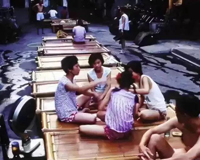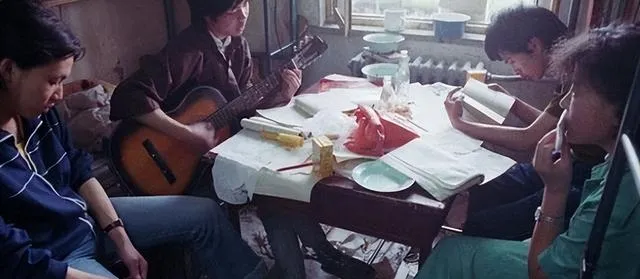 这个段落是青春的忙乱,买票窗口前胳膊像一片林子往里伸,怕错过那班车,女生宿舍里蒲扇拍着腿,水杯排成一溜,另一间屋里几个人挤在一张桌边抄作业,笑声卡在走廊回音里,谁先长发谁先烫卷都是个话题。