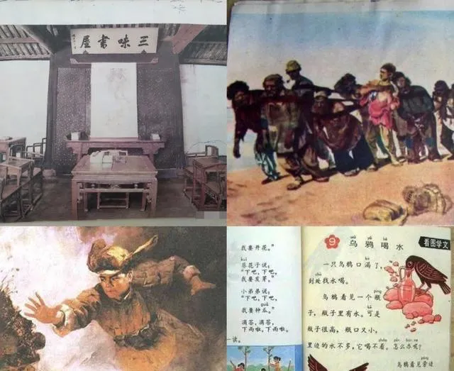 这几张专门留给课本与电器,图中这个叫连环大封面,油墨味厚,书角翘起一小瓣儿,卖场的黑白电视摆成墙,叔把手伸过去拧旋钮那一刻像点火,七零后课本封面颜色淡淡的,插图笔触硬朗,我们齐读“为中华之崛起而读书”,嗓子眼里冒热气。