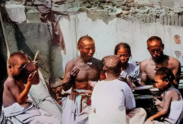 这群人身上全是泥点子,药铺的木牌子被烟熏得黑,桌上摊着碗筷,像刚抿完一口热粥,有人站有人半蹲,脸上的风霜挡不住,小时候我在街角跟着看热闹,奶奶拎着我衣领往回拽,嘟囔一句少看,都是混口饭吃的人。
