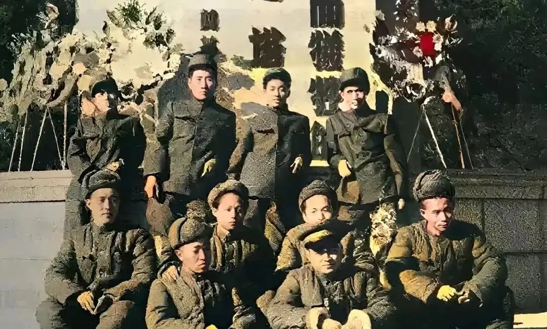 这个群像叫出征前留影,厚呢军装鼓鼓囊囊,少年眉眼还带着学生气,袖口上粘着的白灰没拍干净,摄影师应该也着急,咔嚓一声就定格了,等到花圈和松枝都散了味道,再回头看这张,年轻是真贵。