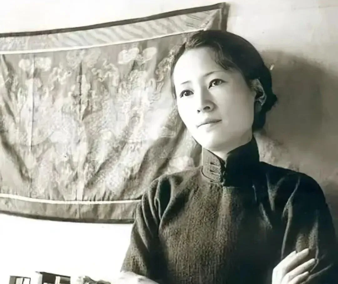 这张侧影叫旧年女学者照,素色旗装的领口收得紧紧,手臂抱在胸前,墙上挂着绣龙的绸面,眼神看向窗外那一小块亮,像刚把一句话咽回去,奶奶看见这张就嘟囔,说那会儿的女孩不靠滤镜,靠骨相和胆气。