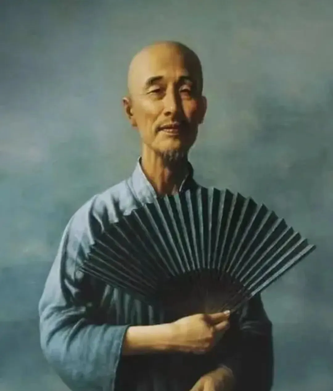 这位老先生手里的是折扇,灰蓝长衫,颧骨清楚,嘴角一点点向上挑,像刚听懂一个冷笑话,扇骨密密地排着,手背的青筋像细绳,画得真,气也真,一把扇子就是一个夏天的风。