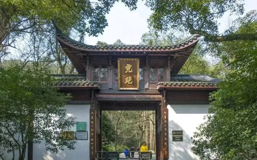 这个门楼叫虎跑寺山门,匾额两字金光压住了深绿的瓦脊,树荫把光切成碎片,小时候我在这门口喝过一碗泉水,甜不甜忘了,记得瓷碗边上薄薄一圈旧痕,爸爸说别贪凉,走慢点,不急,路上有风的时候,心就不燥。