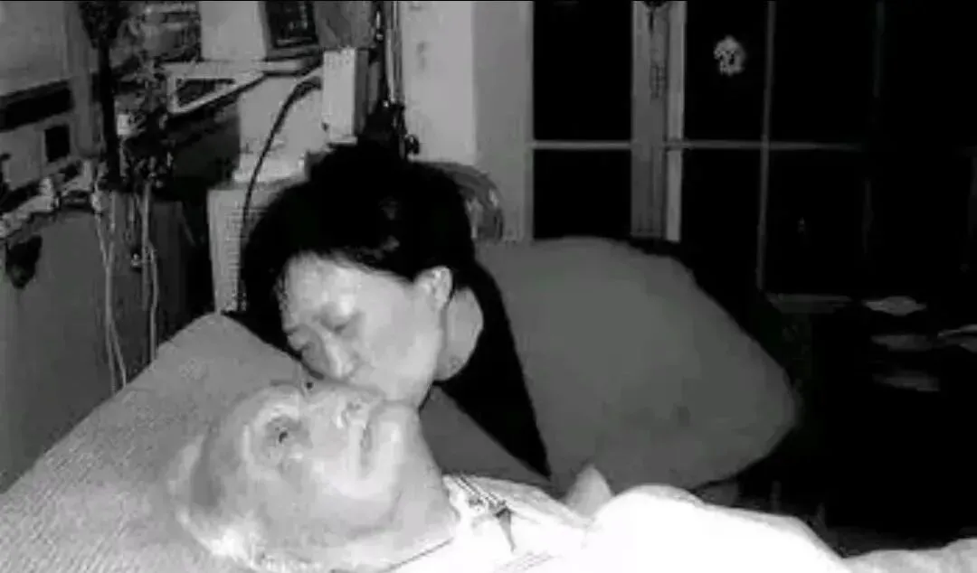 这一幕叫临别之吻,窗外黑得像墨,病床的金属栏杆反着一点冷光,女儿俯下去,额头贴在父亲的额头上,没台词,声音全在静里,有些话不必说,亲一下就懂了。