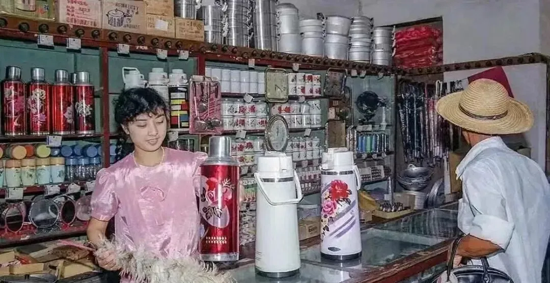 这间铺子是国营百货的柜台,红壳搪瓷暖壶一排接一排,玻璃柜里放着碗碟与铝制脸盆,售货员穿着粉衫,把羽毛掸子往旁边一搁,笑着问要多大的壶,那个年代逛商店,还得排号看票面,现在点点手机就送到楼下,可那种抬头问一声“同志要啥”,人情是热的。