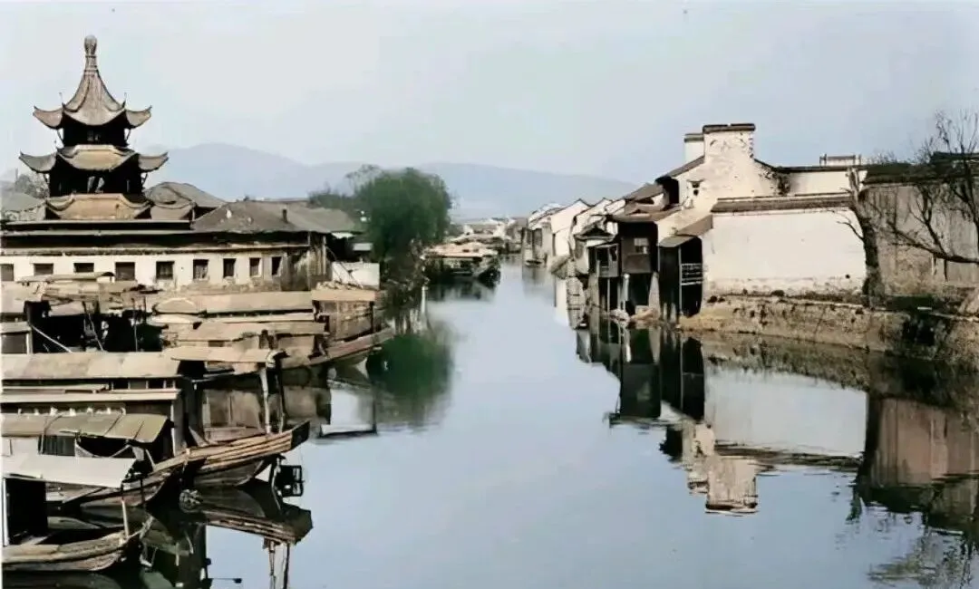 这一汪水叫江南旧景,塔影压在水面上起了波,木船用篷布遮住,白墙的屋檐一片片贴着河,像鱼鳞,小时候我在外婆家门口看人家撑篙,木桨和船舷一磨,吱呀一声拖得很长,现在桥多路直,水乡还是水乡,人味淡了点。
