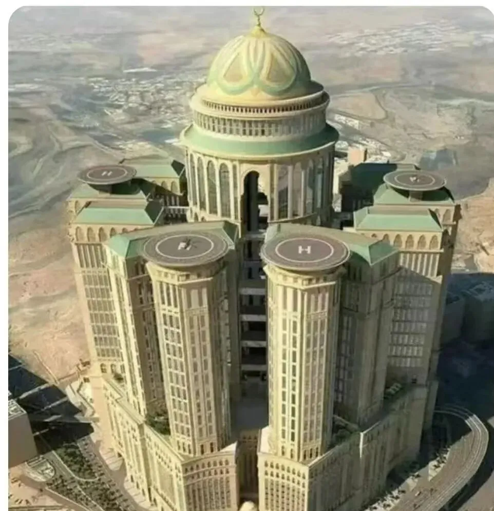 这栋庞然楼叫世界级大酒店,楼顶一圈停机坪像硬币,中央穹顶金绿相间,立面密密麻麻都是窗格,光看体量就知道能吞下多少旅客,以前出门住招待所打一盆水,现在酒店从电梯到房卡全是智能化,住一晚像住进个微型城市。