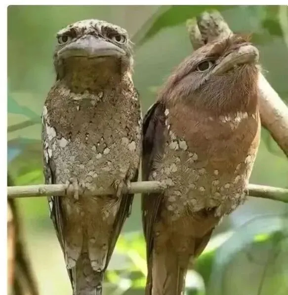 这对长脸家伙叫蛙嘴夜鹰,站在枝头一动不动,灰褐色羽毛和树皮一样花,嘴巴阔成一条线,眼神像在打量你,其实本事在夜里,虫子贴着飞它一抬头就是一口,以前我们只会叫它丑鸟,现在知道它是伪装高手,丑可真是它的护身符。