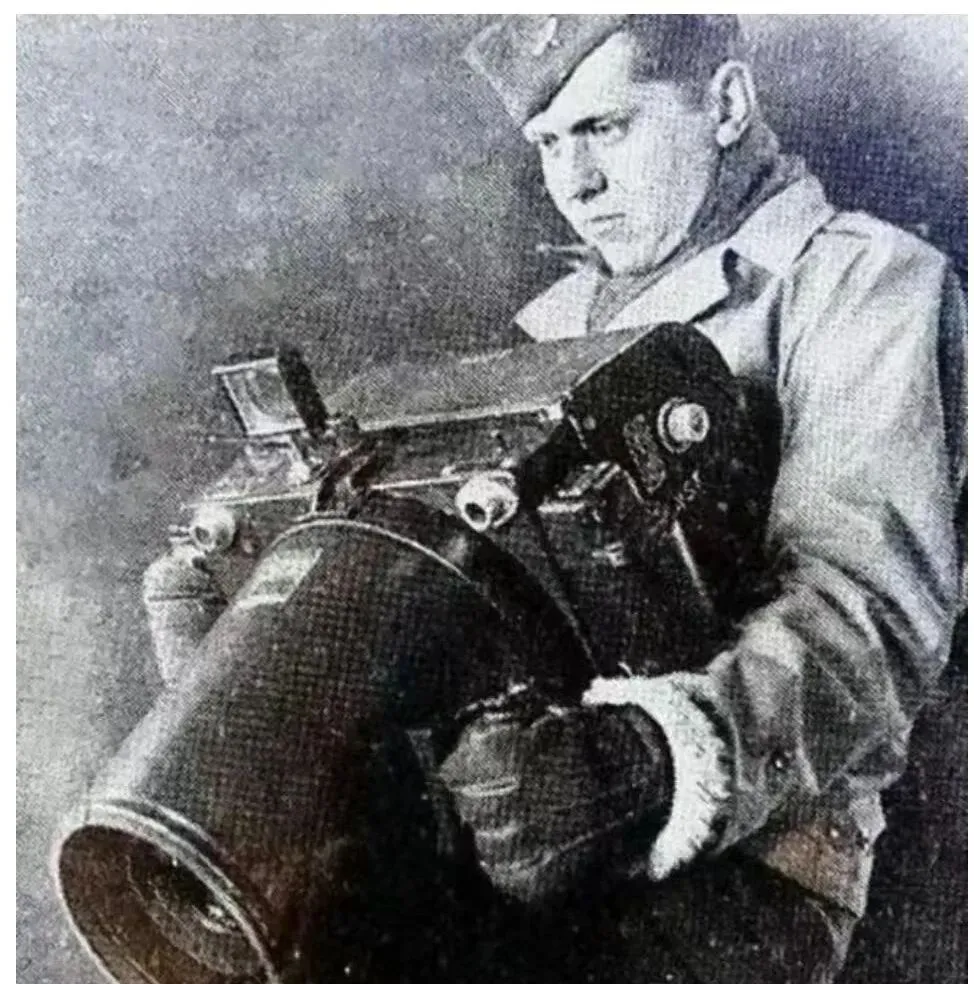 这个黑白老图里抱着的是航空照相机,像端着一门小炮,前面大口径镜头咧着,机身一圈都是旋钮和视窗,飞行员穿着厚手套才拿得住,奶奶看了笑,说那会儿照张像还要洗片,现在手机一拍就分享,成像从来没这么轻巧过。