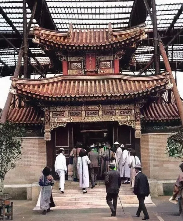 这座屋子一眼看就是重檐歇山顶,檐下斗拱彩画密密,门口石阶三道,人群从中间上去,白衣的、长衫的、黑呢礼服的混在一起,像一锅开了的小米粥,咕嘟咕嘟翻着新鲜劲儿,我外公说,那时城里来了不少洋人,带着照相匣子,哪里热闹就往哪儿钻。