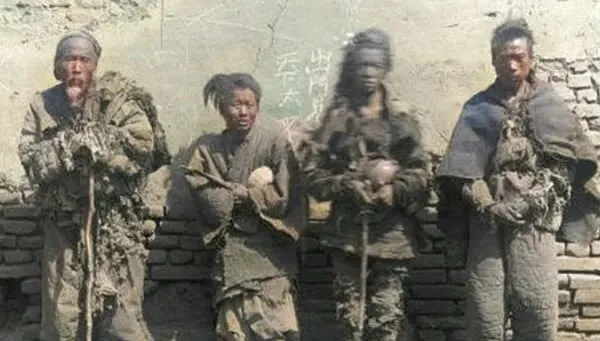 这张最扎心,衣衫成了麻团,绳头吊在胸前,手里攥着根棍子,脸上糊的不是泥就是风霜,排在墙根,影子斜斜落下去,奶奶说,那会儿灾荒一来,乡下人背井离乡,城门口挤满了讨口的,谁家锅里多一勺粥,就省给他们一点,现在我们嫌饭菜凉了热了,想起这张图,心里多少得打个结。