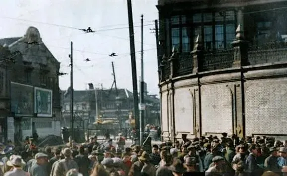 人啊总是这样,翻到一张旧照片就像被人轻轻推了一把,脚下一滑就掉进从前去了,这些彩色老照片可真会讲故事,街角的电线杆子都像有脾气,招牌旗子被风一扯,就把二十年代末的热闹抖了出来,我们慢慢看,不急,认出几个算你厉害,认不出也没关系,听我絮叨两句就当在街口喝碗热茶了。