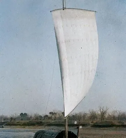 图中这片白色的叫单桅风帆,帆面高高挑起,布眼密密排着,像给风留下了一串小窗,船身不在画里,影子却把水面切成两半,船家一手握着舵一手理帆,风顺的时候不敲不嚷,水纹自己会说话,小时候我站在桥上看半天,心里只盼着帆能再鼓一点,再鼓一点,就像把愿望也吹满。