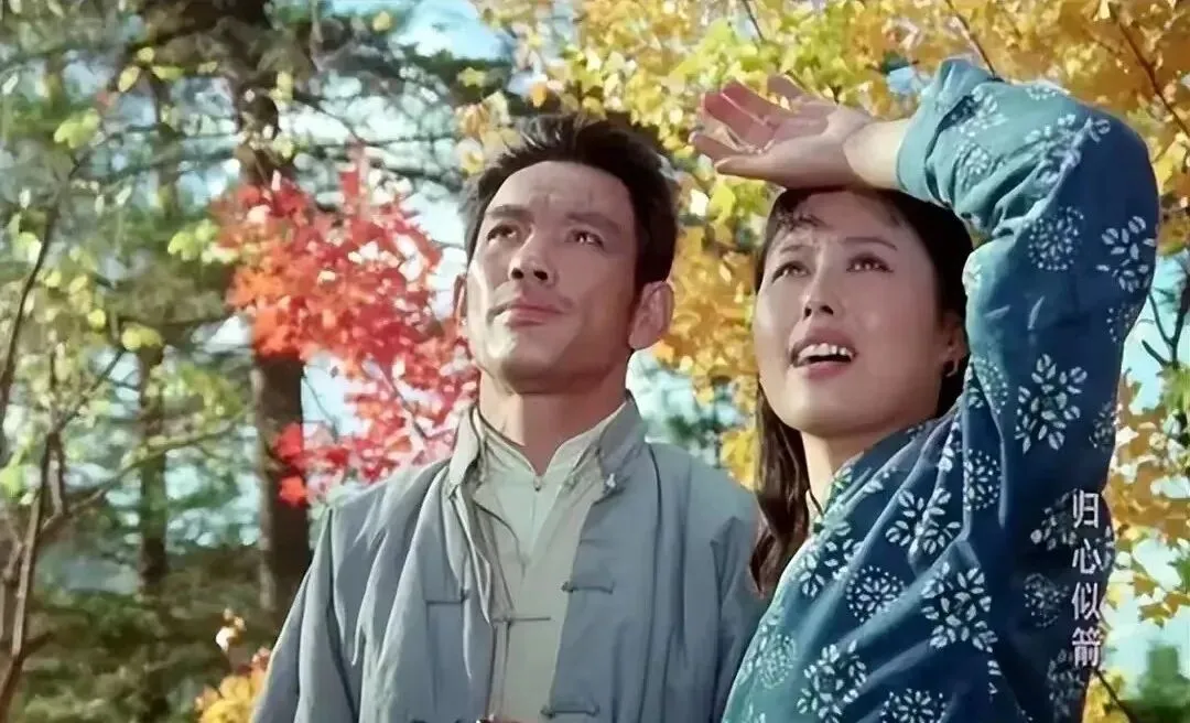 这张一冷一暖的色调一搭,枫叶红得正好,人站在林子底下眯着眼望远,风把衣角一拂就有戏出来了,小时候家里黑白电视播到这类镜头,妈妈总会说一句别说话让我听配乐呢。