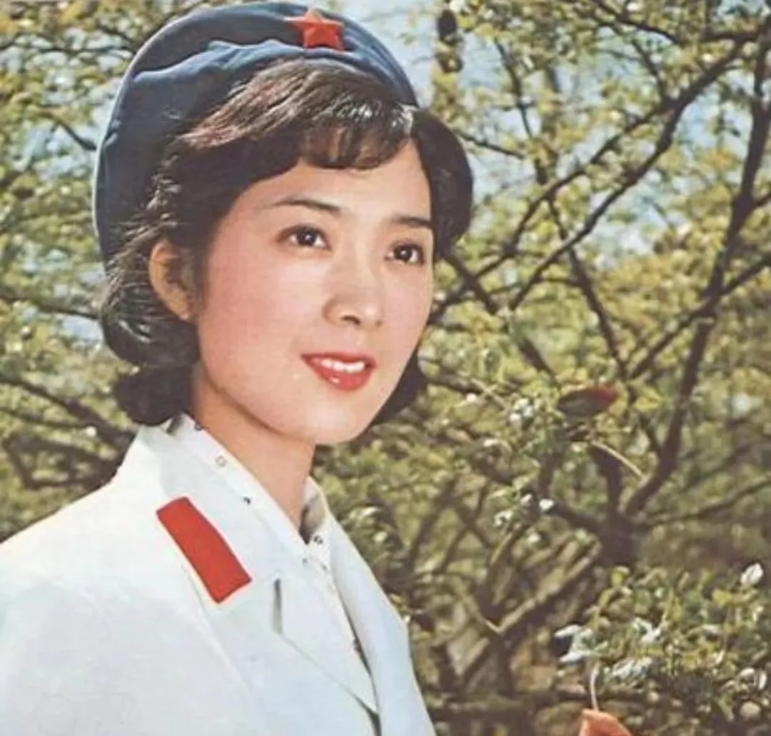这个戴着小红星帽徽的姑娘,白制服配红肩章,脸上那点樱桃色,是时代流行的腮红也是青春的底气,奶奶看见这样的剧照会嘀咕一句,那个时候的女孩子真体面,站着就像一首歌。