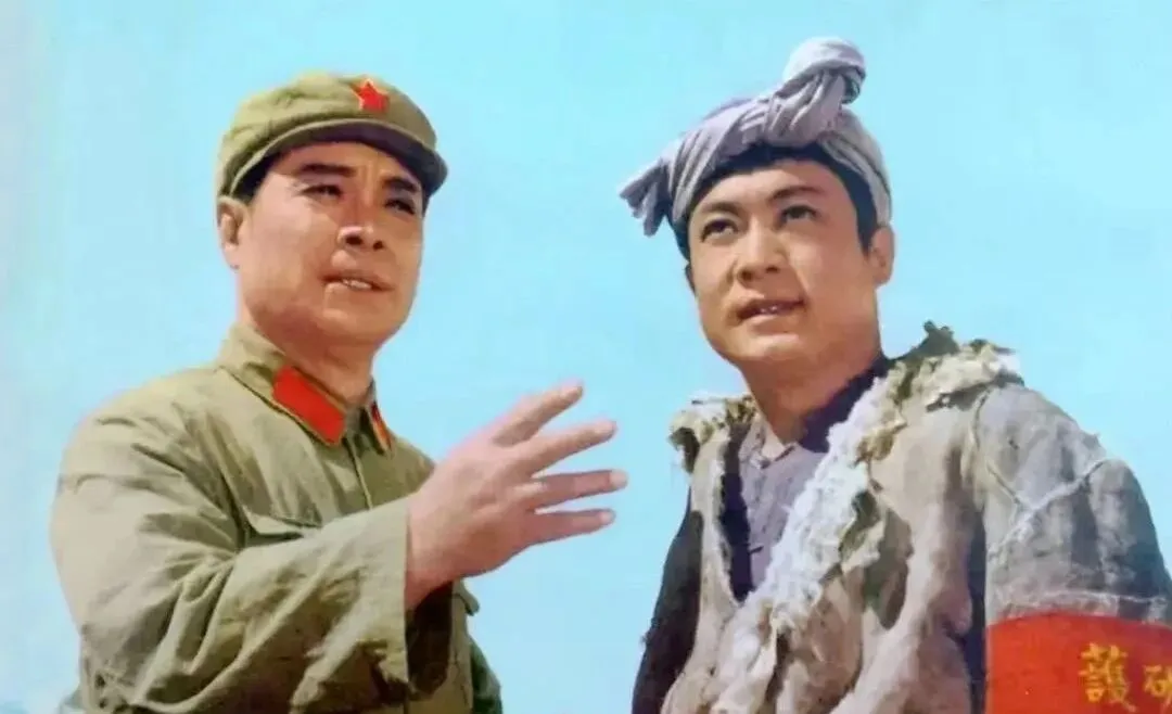 画面干净得只剩蓝天,左边军装一抬手,右边布衫少年听得认真,这种正气凛然的搭配,放在广场露天放映时最带劲,人群里常有人跟着喊好,掌声在风里一阵阵地散开。