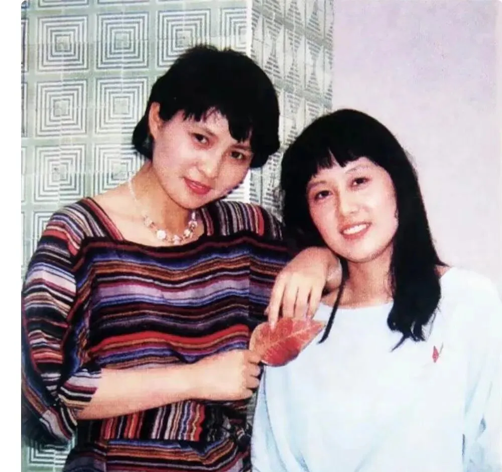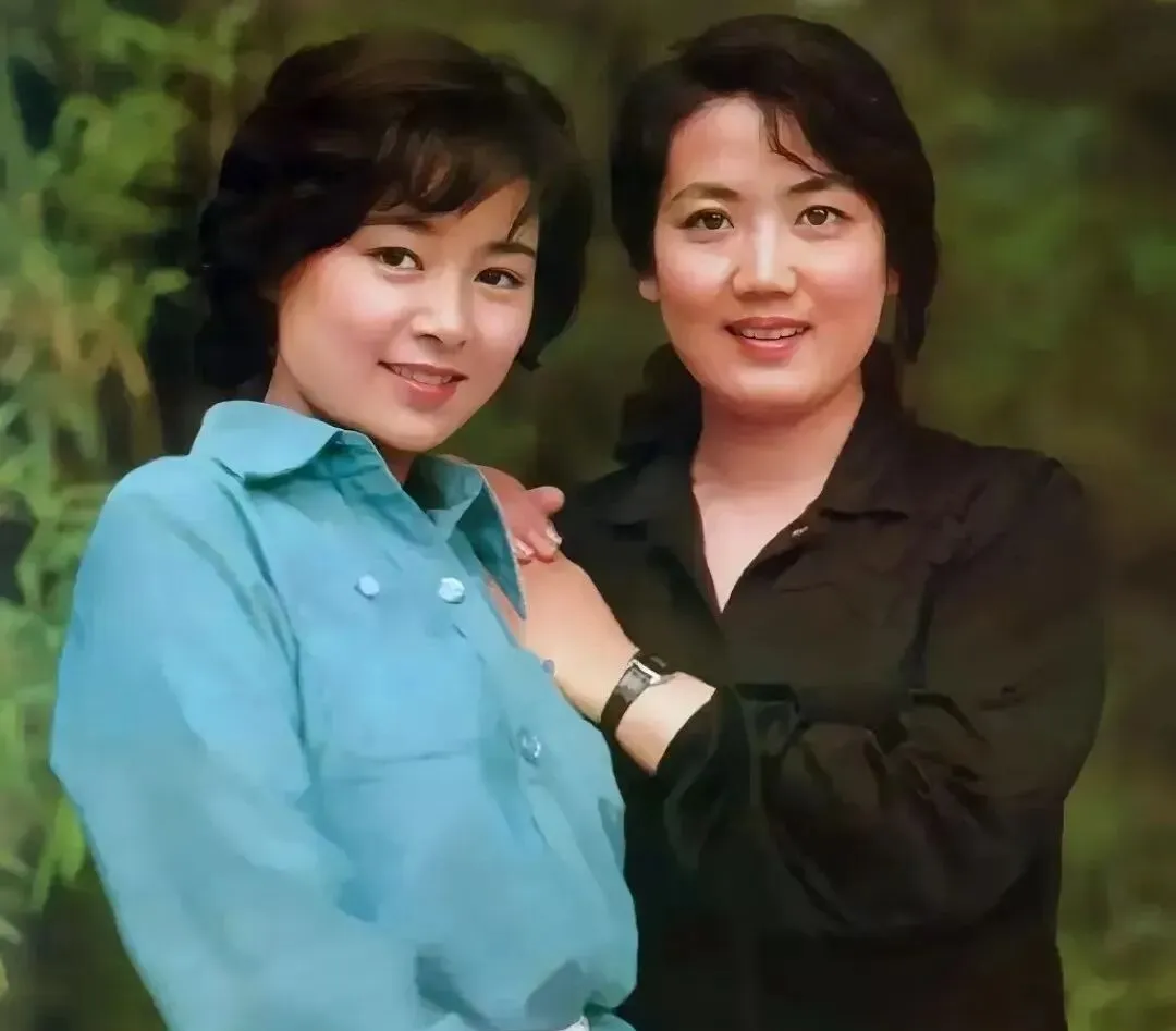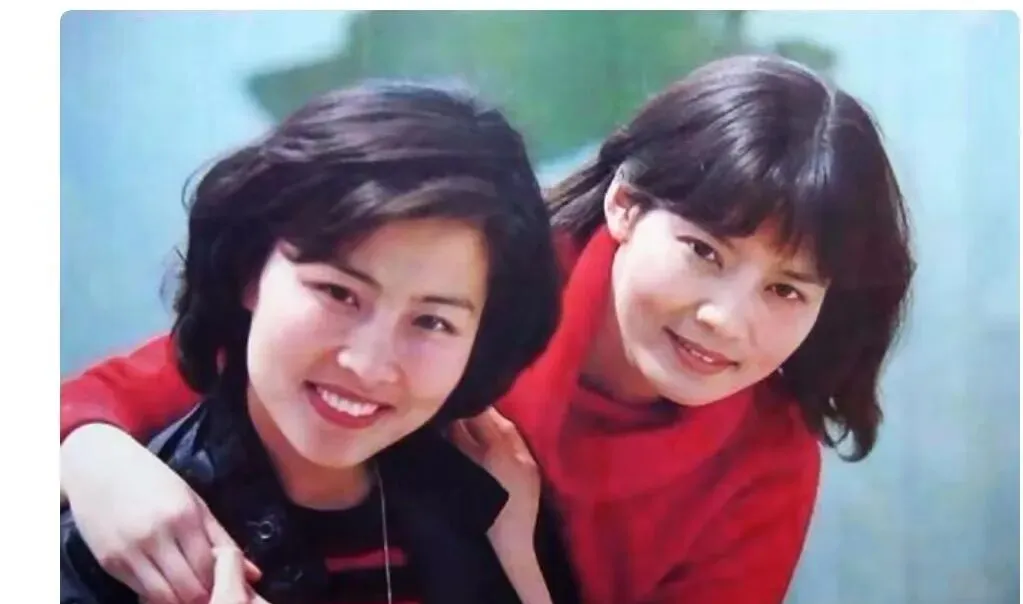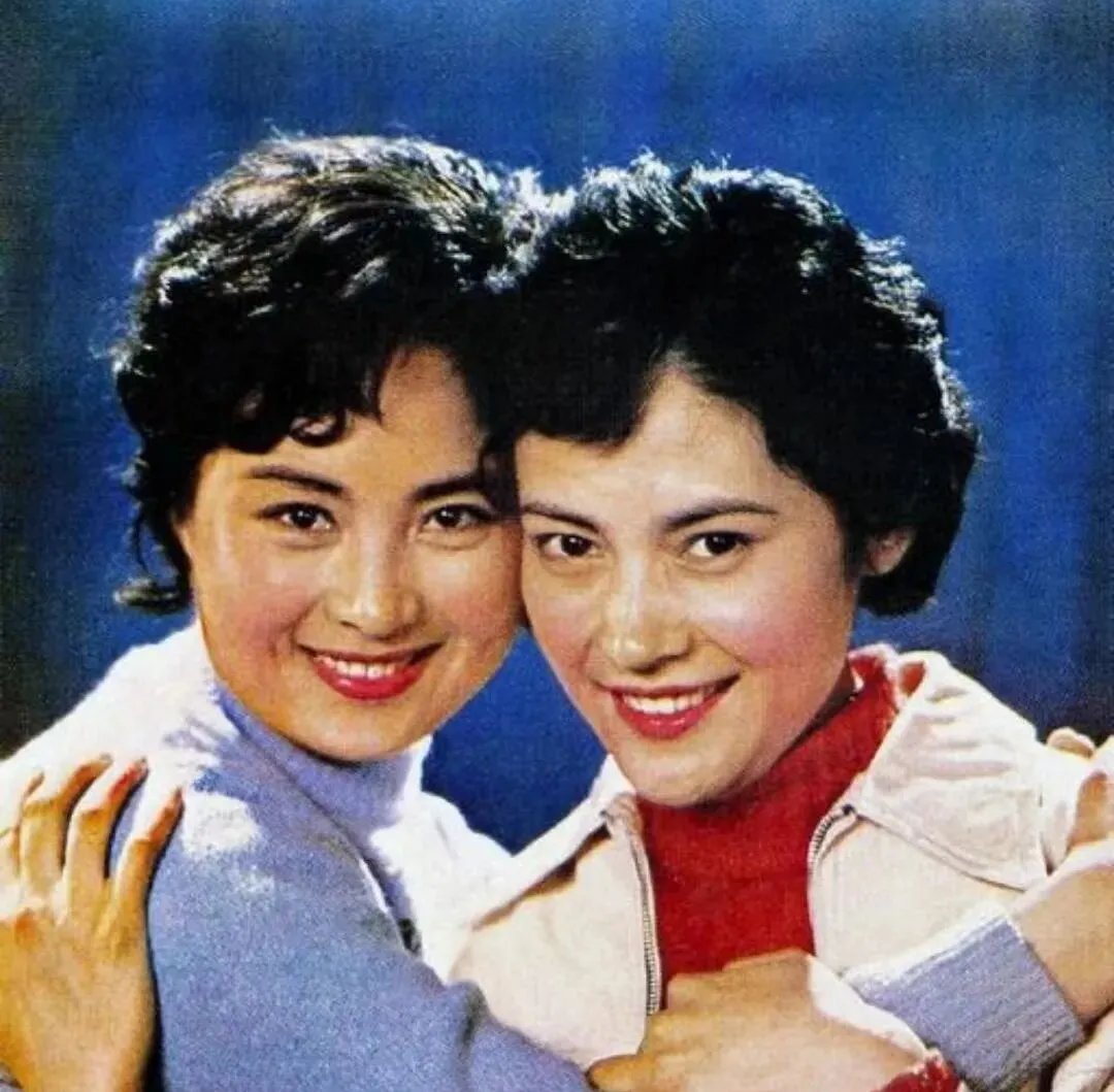 蓝色背景很舞台,姐妹肩并肩贴得紧,衣领子一高一低,像两句押着韵的台词,轻轻一合就对上了拍子,小时候我和表妹学她们的笑法,照出来却总有点憋不住的坏笑味儿。