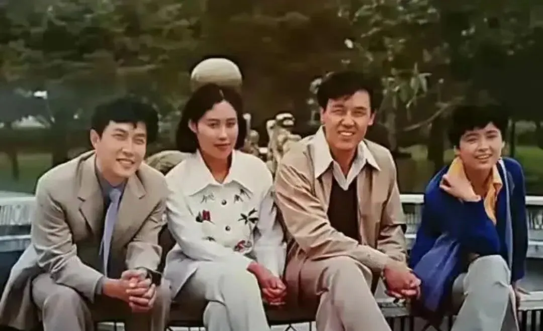 四人坐在喷泉旁边,男生笑得腼腆,女生的衣摆绣着小花,风把头发吹得有点乱,镜头没有滤镜却把普通人的好看拍得明明白白,这就是老电影照人的地方,不用夸张,耐看就是力量。