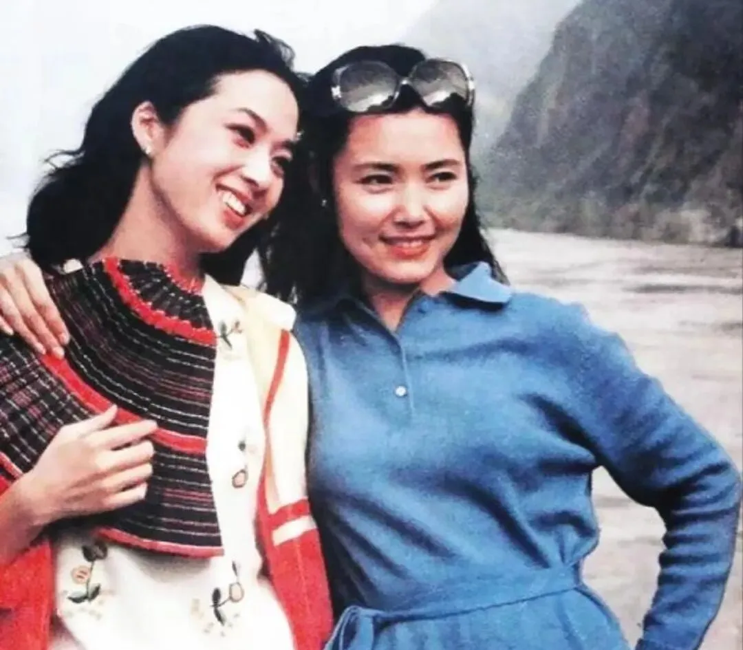 江风大,薄毛衣飘着边,墨镜架在发顶也不掉,旁边这位笑得特别松,像是旅途中临时决定按下快门,那种不端着的美,现在在手机里也难得抓到。