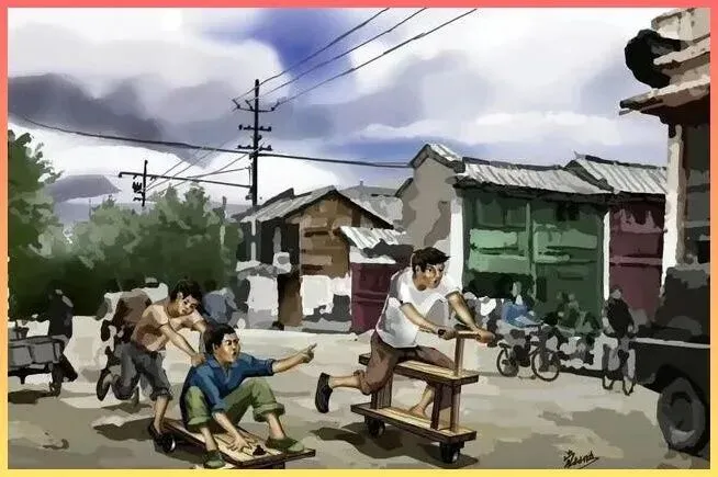 这是什.么.,现在的孩子肯.定没见过。这.是咱.们当年的法拉利.!几块木.板,几个废旧的轴承滚珠,就.是一.辆滑板车。那刺耳的摩擦声,在当年可是最拉风的引擎声,滑.过水.泥地时,整条街的.小孩都会投来羡慕的目光。