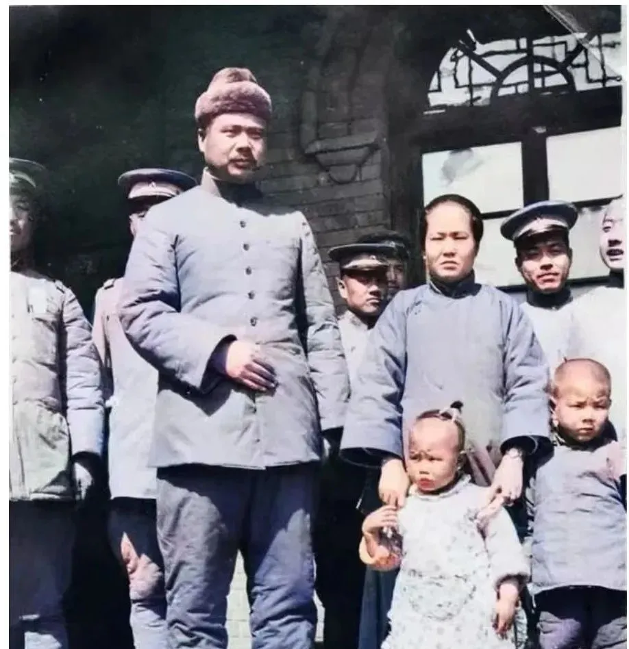 图中这张合影里满是粗呢大衣和棉帽,宽檐的帽沿压住眉眼,衣襟是一排密密的铜扣,孩子拽着大人的袖口,手心里还攥着一截线头,门洞上的砖影把日头切成了方块,站位规整得像排练过一样,可眼神里那股子认真的劲儿,分明是过日子时练出来的定力。