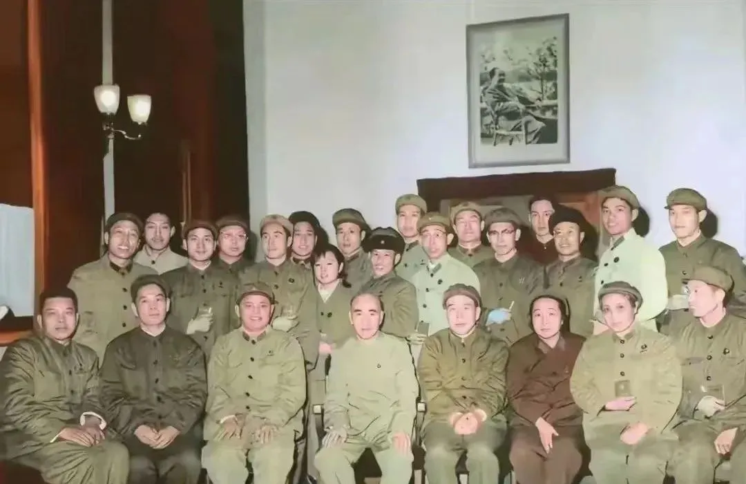 这屋里灯罩是乳白色的玻璃,墙上挂着老照片,木靠背椅一字排开,军绿色和卡其色挤成一团,笑容不整齐,有人抿着嘴,有人咧着牙,袖口边露出织补过的线头,凑在一起像刚散会的那一刻,松一口气却还舍不得散场。