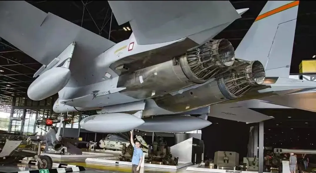 这家伙的个头有多大,站到机腹底下一伸手才到副油箱的肚皮,双发动机的喷口像两只巨兽的喉管,铆钉排得直直当当,起落架收纳在舱门里,灯带反着冷光,博物馆里回声空空的,一步远两步响,钢铁的美感就是这么直给。