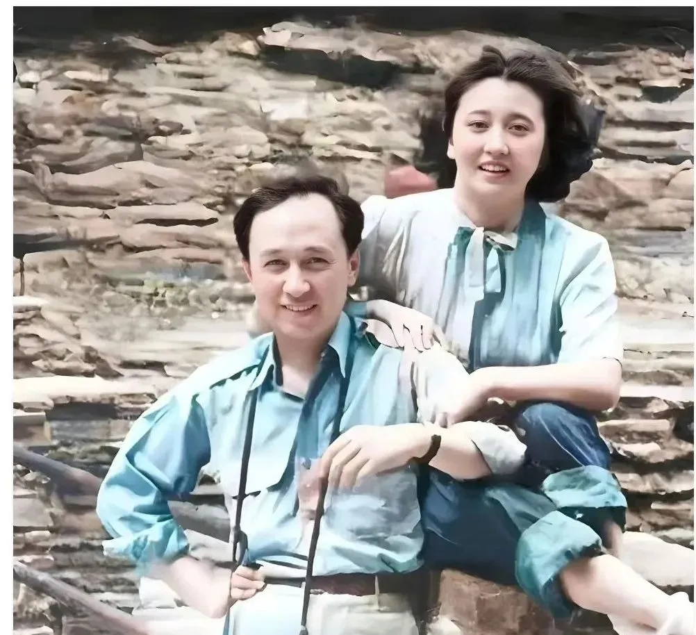 石阶打着蜿蜒的弯,卷起的裤脚露出脚踝,手里握着眼镜,另一只手搭在膝上,身旁的人把腿往他膝上一搁,笑容往前一推,像山里的风把发梢吹乱,衬衫的蓝在阳光下分了层,旧相纸被岁月揉出褶,快乐的纹路反倒更清楚。