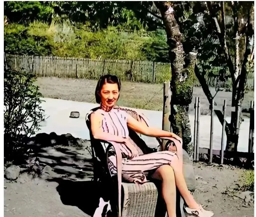 这位坐在藤椅上,条纹旗袍顺着身形往下走,园子里树影一片一片地洒到裙摆上,脚背踩着浅口鞋,指尖搭在扶手上,阳光在她脸上挑挑拣拣,像在问要不要小憩一会儿,旁边若有人说一句天儿真好,她大概会回一句等会儿去喝点冰镇酸梅汤。