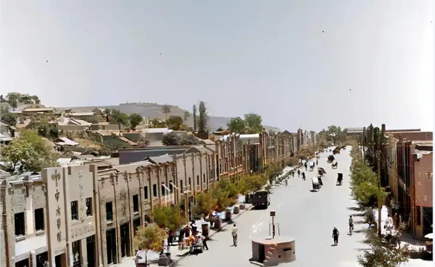 这张看的是一条新开的大街,楼排得整,路心摆着花盆,远处的梁像一道暗线压着天,行人稀稀拉拉,几辆马车慢慢刮地走,空气干净得有点刺眼,爷爷说那时候讲究“修路先栽树”,夏天影子就有了,现在车多了树也多了,只是走路的人少了,步子也被催得更快。