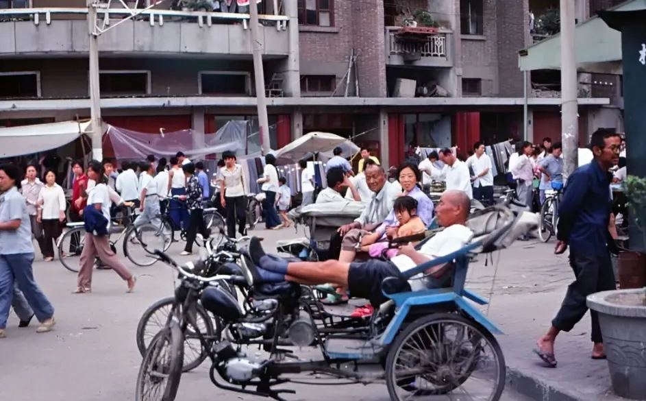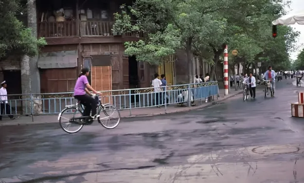 大街上到处都是飞鸽、永久牌的“二八大杠”自行车。 大家都穿蓝色、绿色或者灰色的制服,如果有人穿着红色的确良衬衫的话那就是整条街上最帅的人了。那时候没有早晚高峰时汽车尾气的存在,在古城上空飘荡着的是清脆响亮的自行车铃声,“叮铃玲”地回荡在空中。