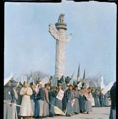 五四运动彩色老照片:北京学生的反帝爱国风暴。