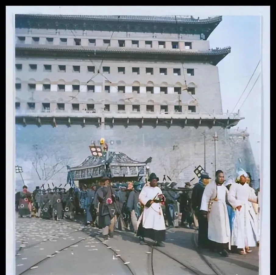 彩色老照片展示民国时期北京送葬队伍