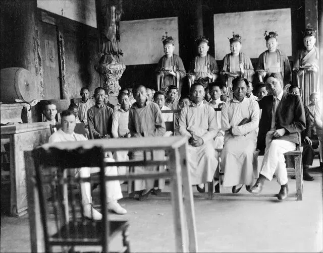 灌县的基督徒在道教的庙里开会,能在这里面传基督教,看来道家很包容啊!